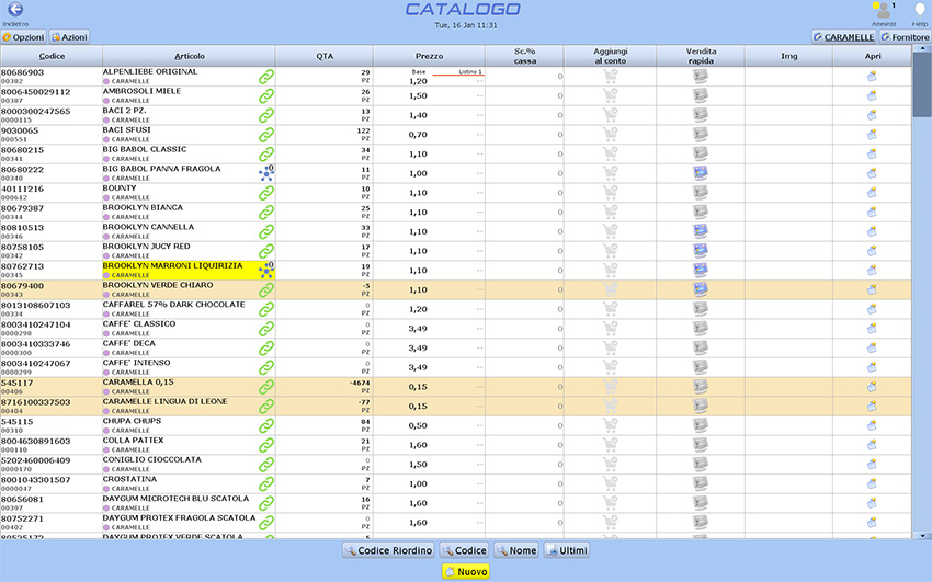 Tramite il Catalogo, potrete inserire nel sistema tutti i prodotti presenti nel Vostro esercizio, classificarli ed associare un codice a barre per la vendita.
