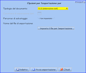 Mediante questa funzionalità è possibile effettuare l'esportazione dei dati